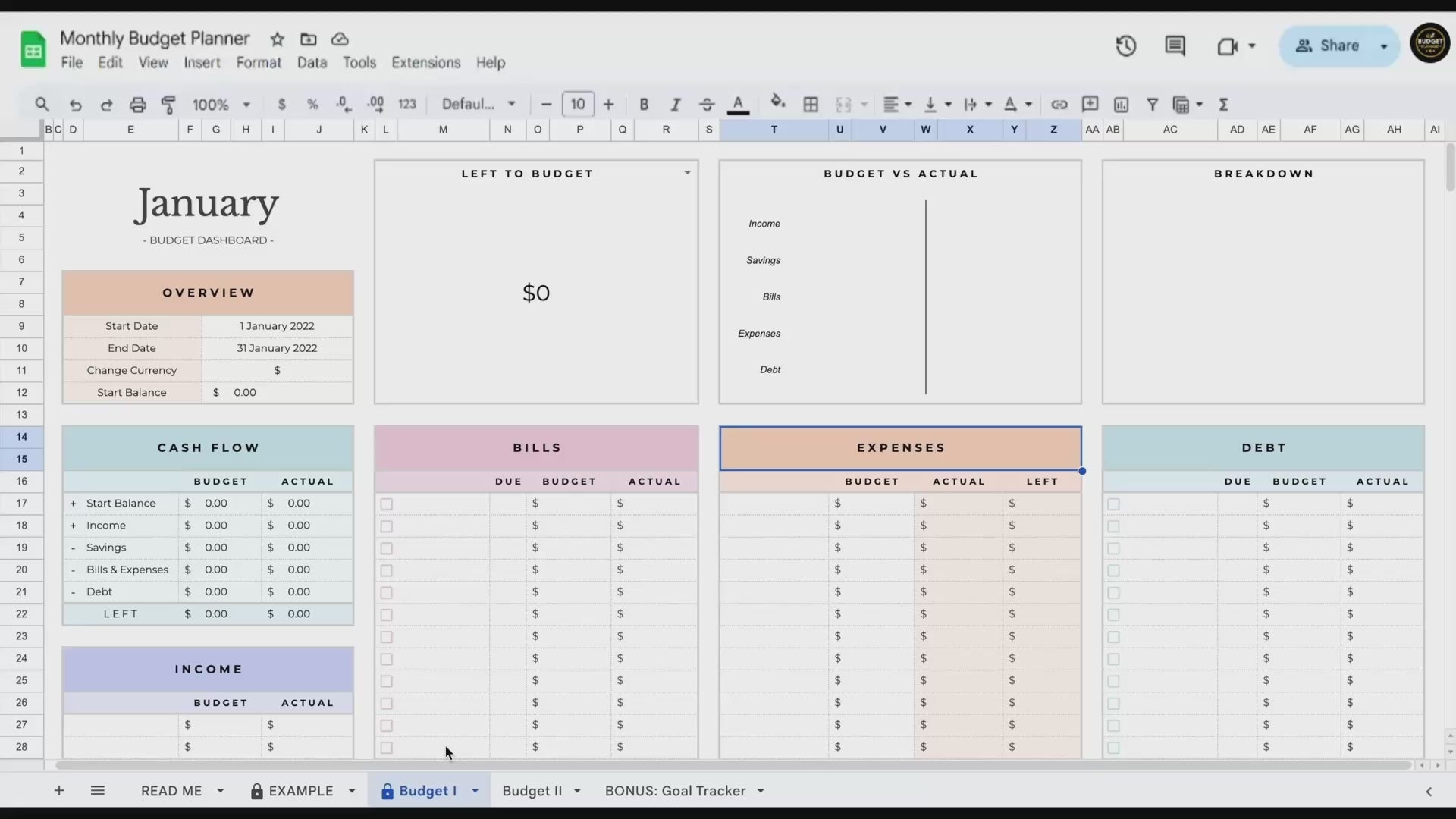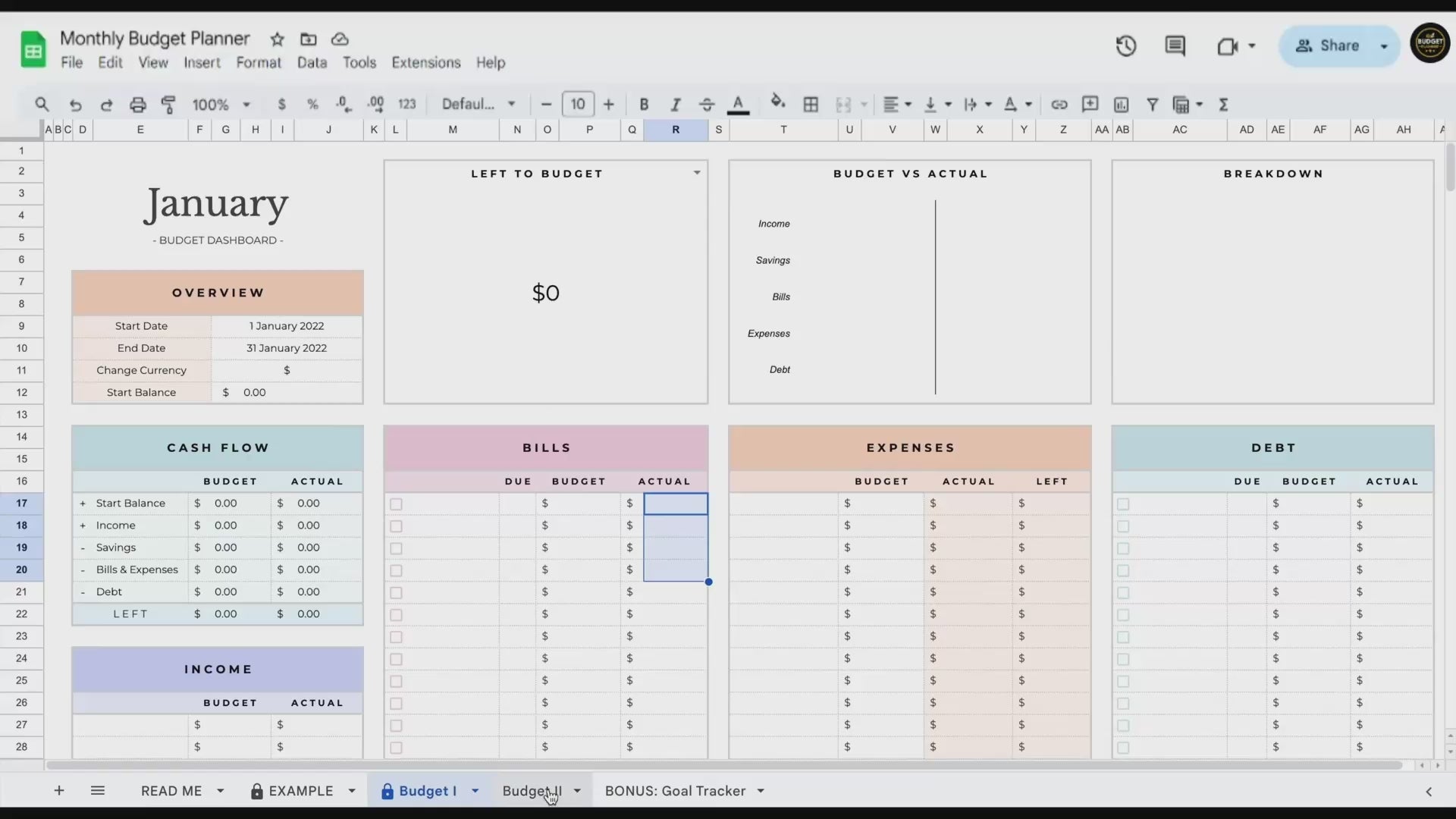 - This Monthly Budget Planner is made specially for Google Sheets, a free and easy tool that anyone can use. It will not work properly in other programs like Excel, Notion, or Numbers.
