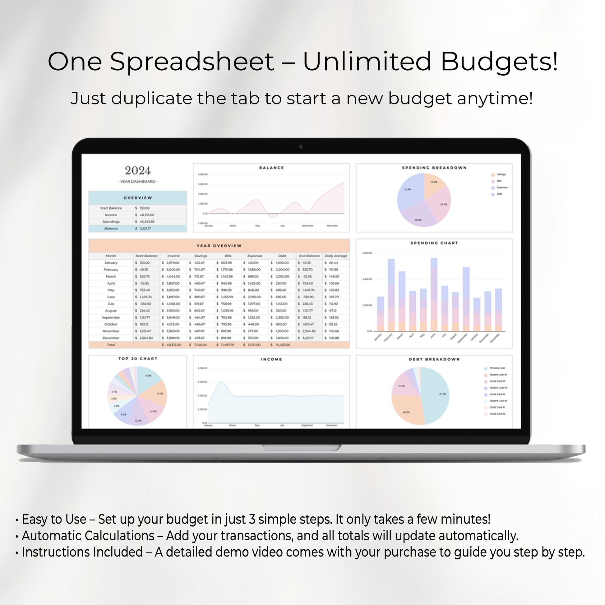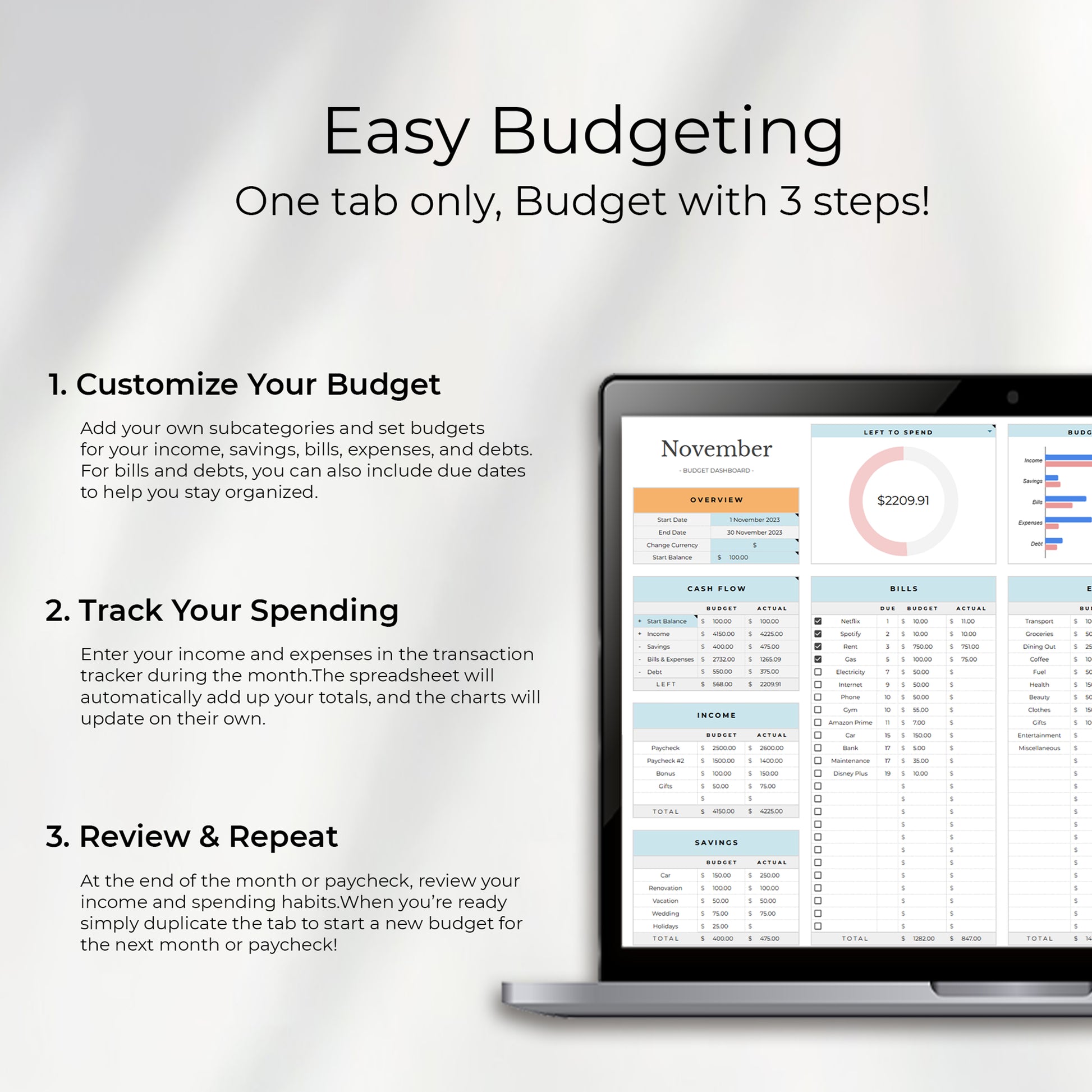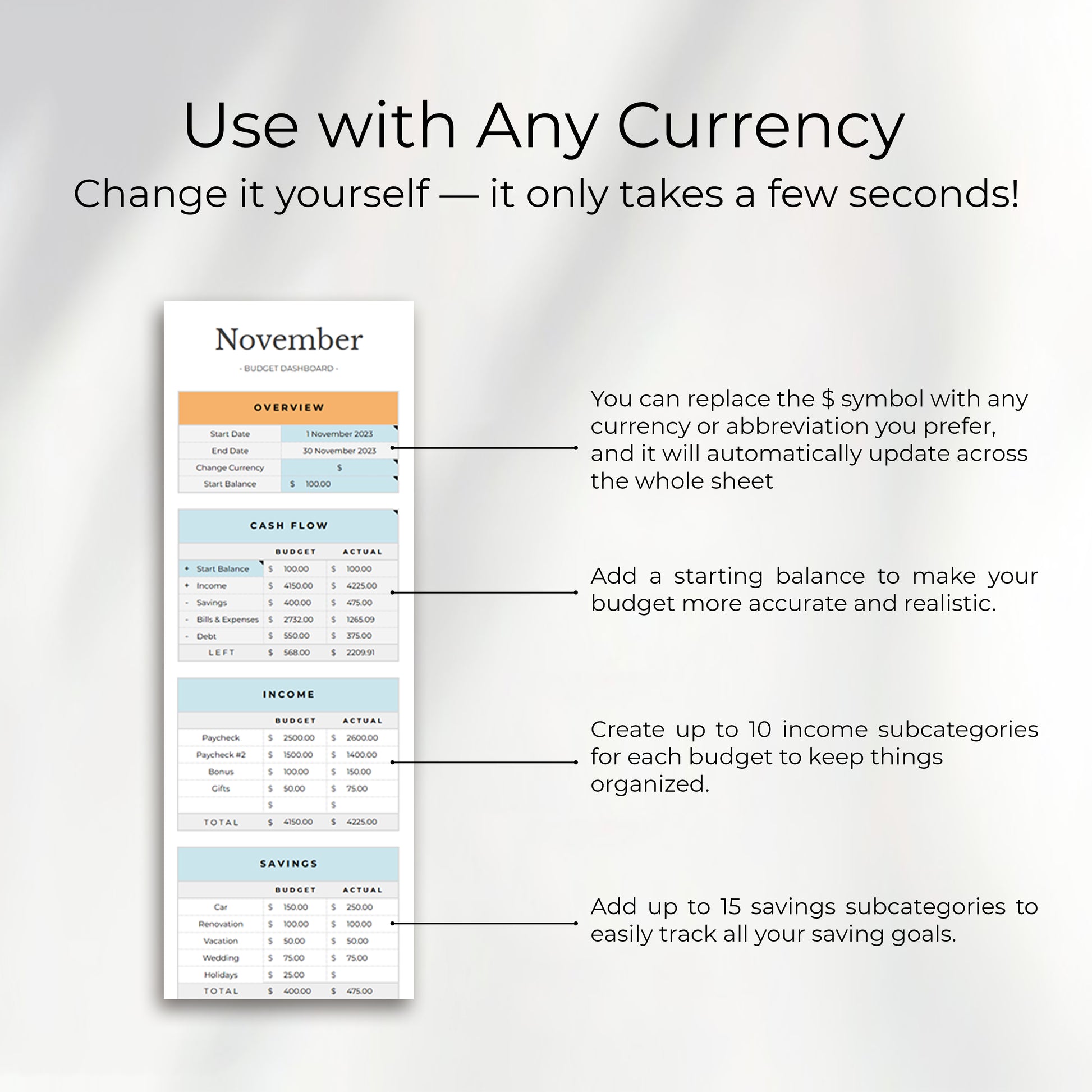 • This Monthly Budget Planner is made specially for Google Sheets, a free and easy tool that anyone can use. It will not work properly in other programs like Excel, Notion, or Numbers.